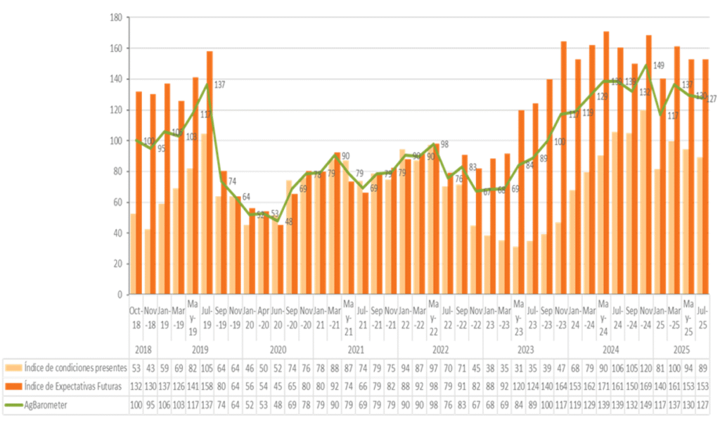 El último informe del Ag Barometer Austral, elaborado por el Centro de Agronegocios y Alimentos de la Universidad Austral, señala que la confianza de los productores agropecuarios permanece en niveles positivos, aunque evidencia una leve disminución respecto al año anterior. El relevamiento se llevó a cabo en septiembre y octubre de 2025, en un contexto marcado por desaceleración económica y alza de tasas de interés.