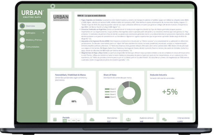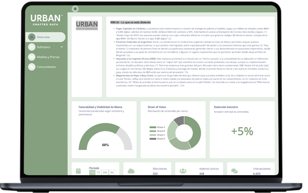 URBAN Grupo de Comunicación presentó RIM (Reputation Intelligence Monitor), un sistema de monitoreo reputacional basado en inteligencia artificial. El desarrollo está orientado a medir de forma integral la reputación de empresas, marcas y sus líderes, centralizando el análisis en un micrositio web de acceso en tiempo real.
