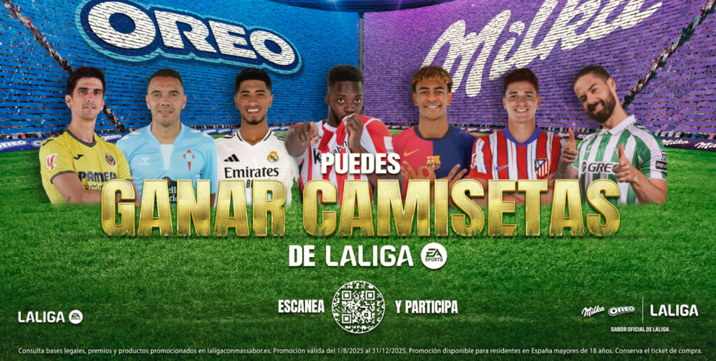 OREO y Milka, marcas pertenecientes a Mondelēz International, anunciaron una promoción exclusiva dirigida al público español aficionado al fútbol. La iniciativa prevé el sorteo de camisetas oficiales de los clubes de LALIGA EA SPORTS y LALIGA HYPERMOTION durante el segundo semestre de 2025.