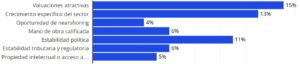 A nivel regional, el ranking de M&A lo encabeza Brasil a partir de sus fortalezas como el ecosistema de innovación y acceso a propiedad intelectual; el crecimiento por sectores específicos (energía, agricultura, y valuaciones atractivas. Le sigue México por su posición estratégica para nearshoring hacia América del Norte, infraestructura logística y acuerdos comerciales (T-MEC), talento calificado y también valuaciones competitivas, aunque con el riesgo de tensiones arancelarias con EE.UU. que generan incertidumbre. El tercer lugar lo ocupa Chile por sus valuaciones atractivas, estabilidad macroeconómica (inflación controlada), si bien con algún grado de incertidumbre de reformas legales (privacidad de datos) que añaden pasos al due diligence. Y Argentina aparece luego en el ranking destacándose por valuaciones atractivas, crecimiento de sectores, estabilidad política, y talento calificado.