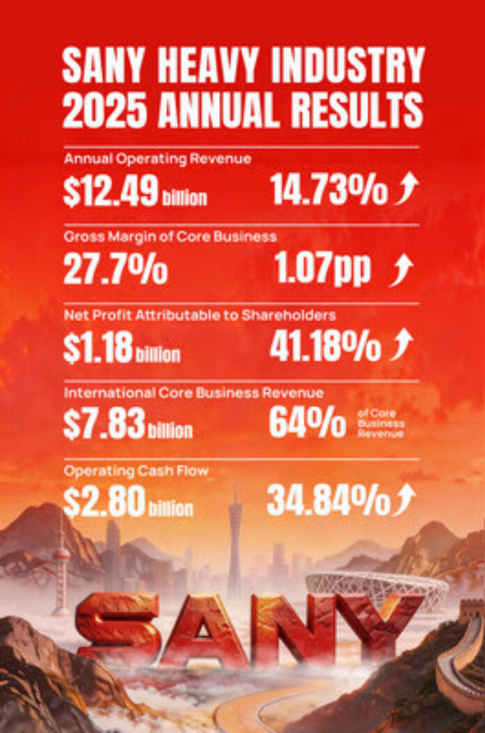 Sany Heavy Industry (600031.SH, 06031.HK) presentó sus resultados financieros de 2025 con ingresos por US$ 12.490 millones, un aumento interanual de 14,73%. La ganancia neta atribuible a los accionistas totalizó US$ 1.180 millones, con una suba de 41,18%. El efectivo neto generado por actividades operativas alcanzó US$ 2.800 millones, lo que implicó un incremento de 34,84% frente al año anterior.