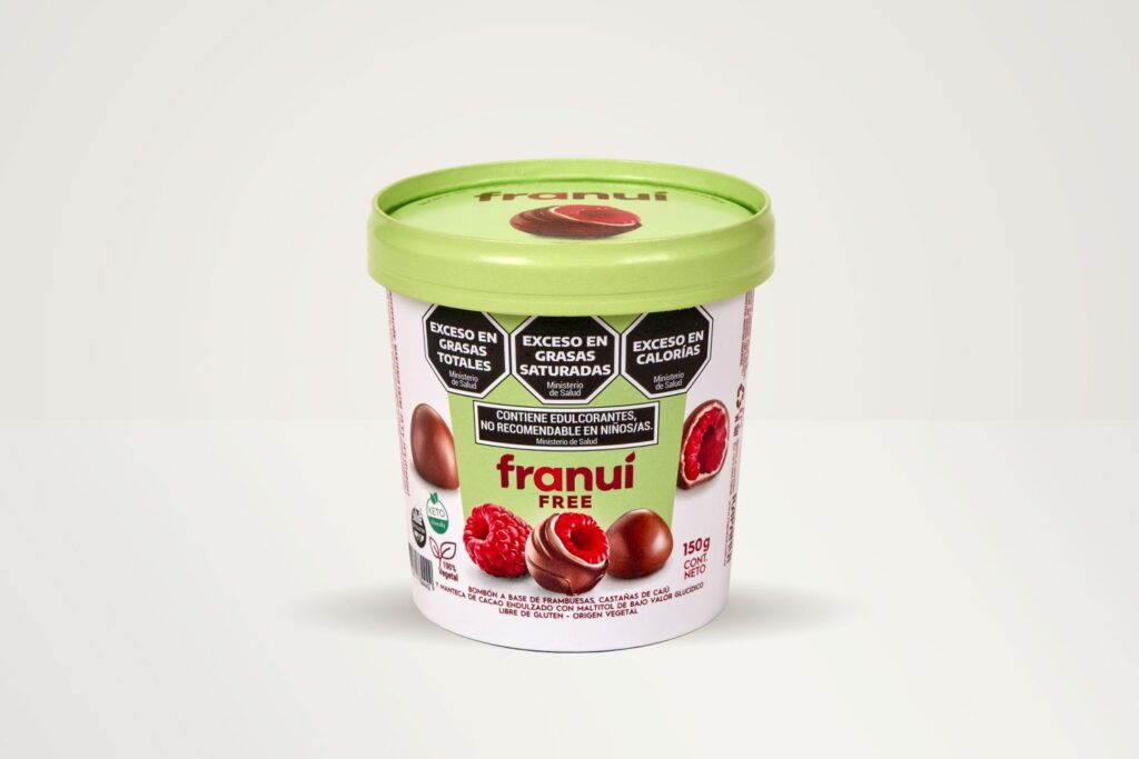 Franuí Free se suma a las otras tres variedades del producto disponibles en el país: Franuí Leche (frambuesas bañadas en chocolate con leche y chocolate blanco), Franuí Amargo (frambuesas bañadas en chocolate amargo y chocolate blanco) y Franuí Pink (frambuesas bañadas con chocolate polvo de frambuesas y chocolate blanco).