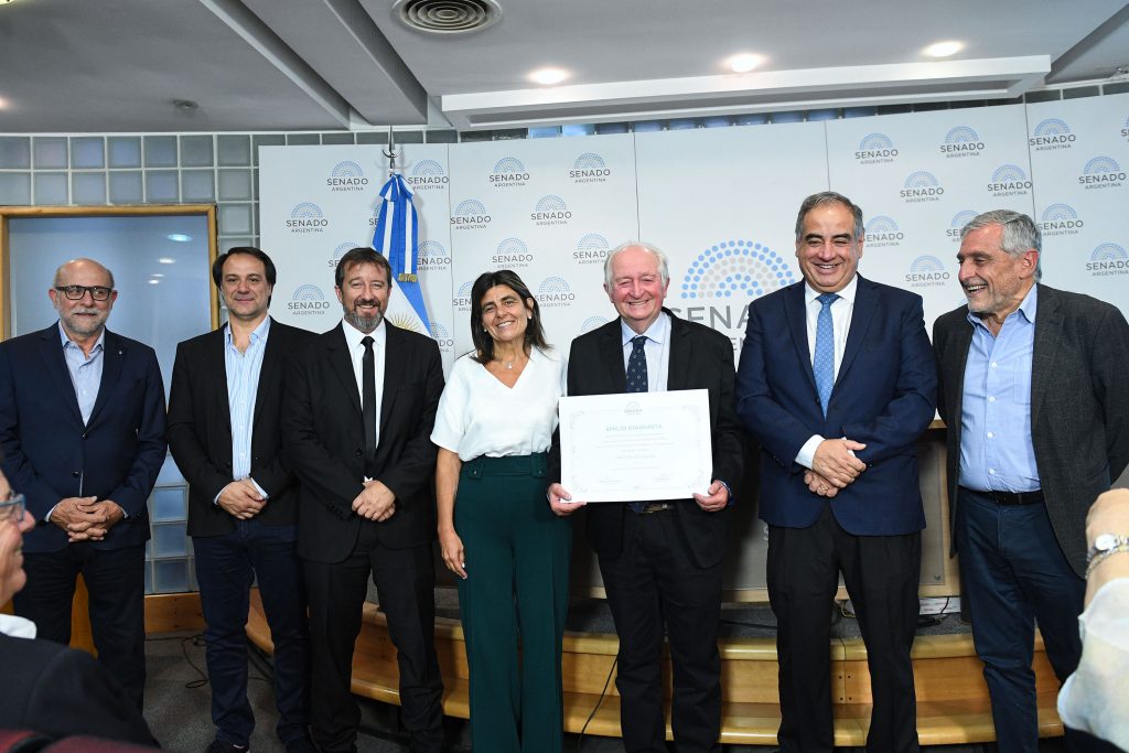 En un acto organizado por los senadores por Mendoza, Alfredo Cornejo y Mariana Juri, y celebrado en el Salón Auditorio Emar Acosta desde las 11 hs y transmitido vía streaming desde Senado TV, el bodeguero y productor vitivinícola Emilio Giaquinta fue distinguido con el Diploma de Honor del Senado de la Nación, en un acto presidido por la senadora Jury, el presidente de Coviar, Mario González, y los vicepresidentes José Alberto Zuccardi y Gustavo Samper.