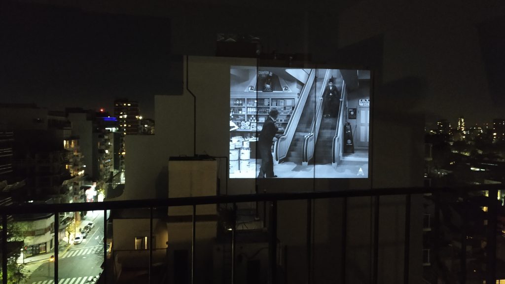 Andes Origen y Mubi proyectaron Tiempos modernos en una medianera en Palermo para que los vecinos vuelvan al cine, desde el balcón.
