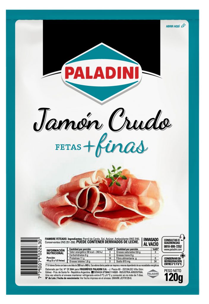 Paladini lanzó su nueva línea de feteados “Fetas más finas”. Esta es una propuesta innovadora de Paladini para los consumidores que prefieren el consumo de porciones más livianas o para darse un gusto medido a la hora de consumir fiambres. Esta nueva presentación ofrece las variedades de jamón cocido y crudo, paleta cocida, mortadela, salame de Milán y bondiola con misma calidad que los caracteriza.