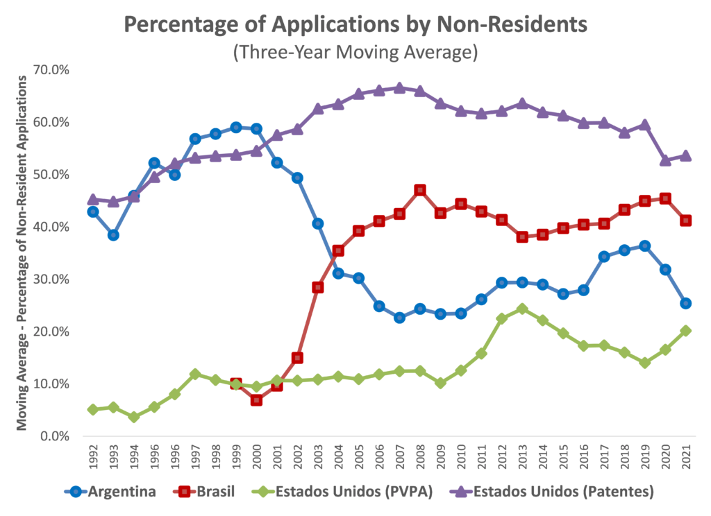 Argentina experimentó una marcada disminución en la presencia de inversores extranjeros en el ámbito de nuevas variedades de semillas durante los últimos veinte años....