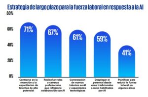 Los líderes empresarios mundiales también reconocen que el éxito de la adopción de la IA depende de una implementación efectiva y, fundamentalmente, prevalece el compromiso con una implementación de nuevas tecnologías liderada por personas. Si bien persiste la preocupación de que la IA pueda generar una pérdida generalizada de empleos, el 61% de los CEO afirma que activamente contrata nuevos talentos capacitados en IA y tecnologías más amplias, mientras que el 70% se muestra preocupado por la competencia por los talentos capacitados en IA y el 77% destaca la mejora de las habilidades de la fuerza laboral como un desafío, lo que demuestra la creciente competencia por el talento.