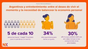La tensión entre el deseo de vivir el momento y la necesidad de balancear la economía personal atraviesa todo el estudio: 5 de cada 10 personas hacen “magia” financiera para no perderse un evento, mientras un 34% dice que ahorra para darse un gusto y otro 30% afirma que prefiere disfrutar sin culpa, incluso si eso compromete otras prioridades.